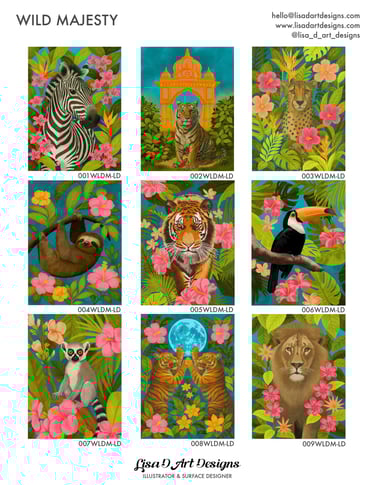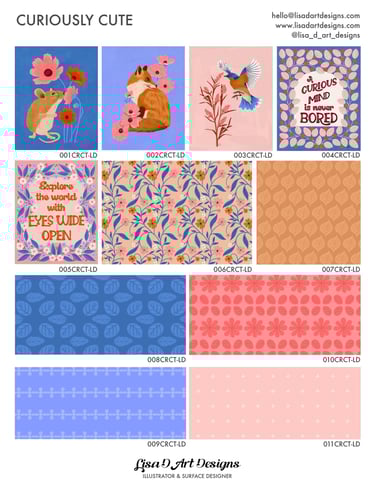 If you are interested in licensing any of my designs, please e-mail me at hello@lisadartdesigns.com or send me a message on the contact page with the item numbers and I would be happy to discuss it with you. Thanks!