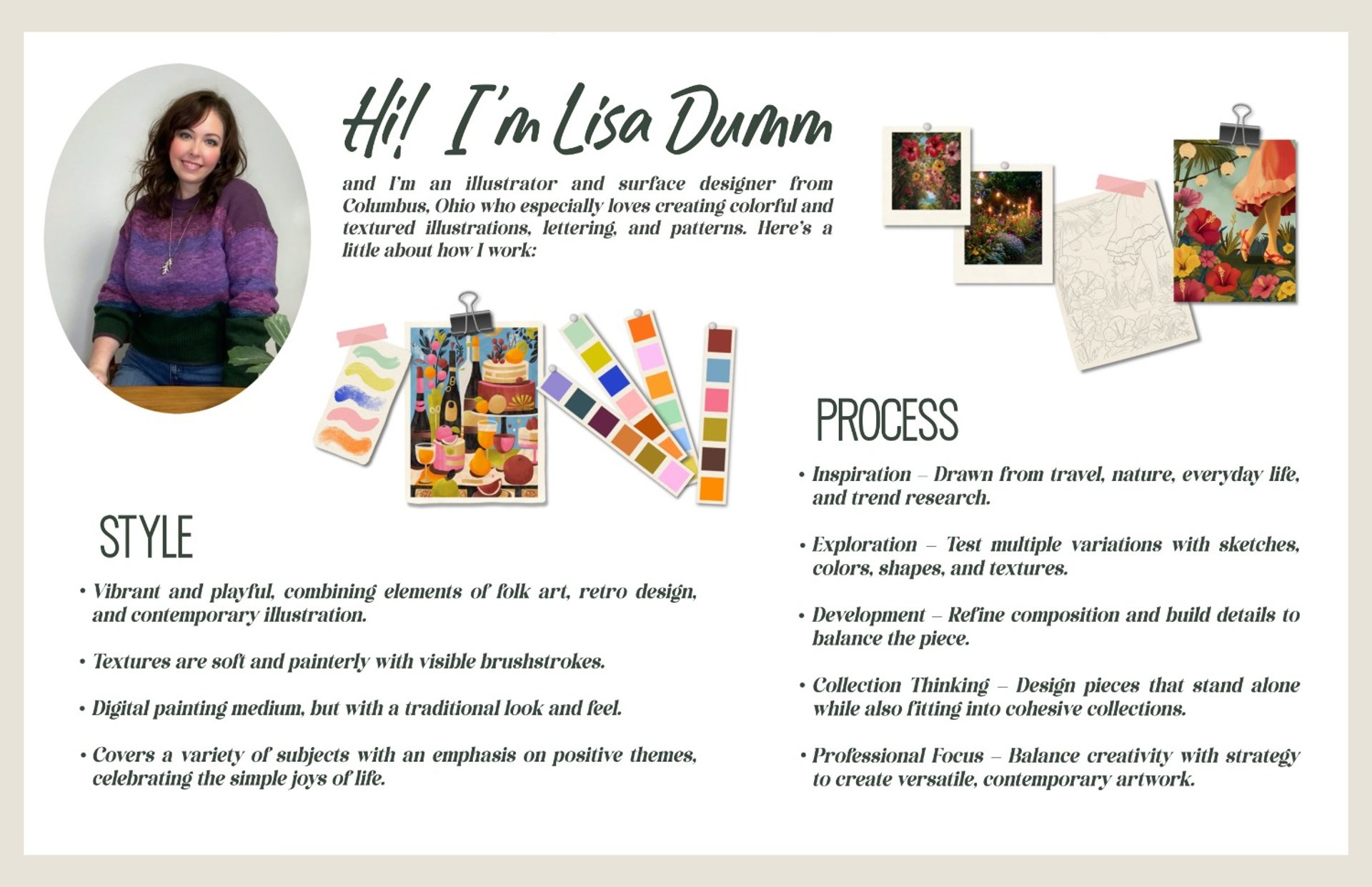 Below is a sampling of some of my recent designs, perfect for a wide range of projects. If you're interested in licensing any of my work or having me create a custom design for you, please get in touch via email at hello@lisadartdesigns.com or message me through the contact page. I would love to see what magic we can make with my artwork!