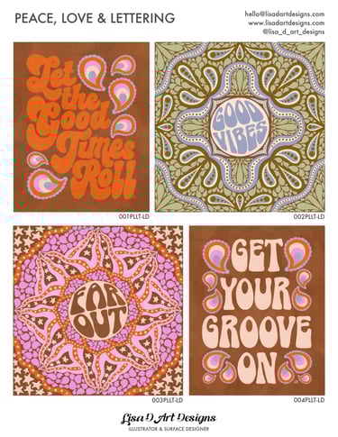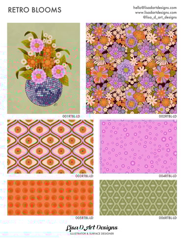 If you are interested in licensing any of my designs, please e-mail me at hello@lisadartdesigns.com or send me a message on the contact page with the item numbers and I would be happy to discuss it with you. Thanks!