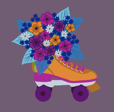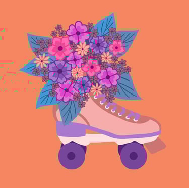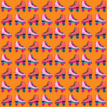 retro rollerskate-orange & purple