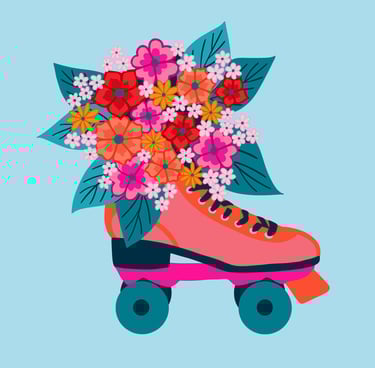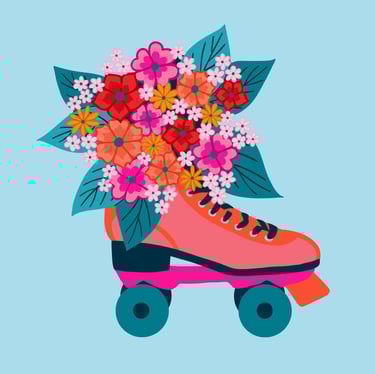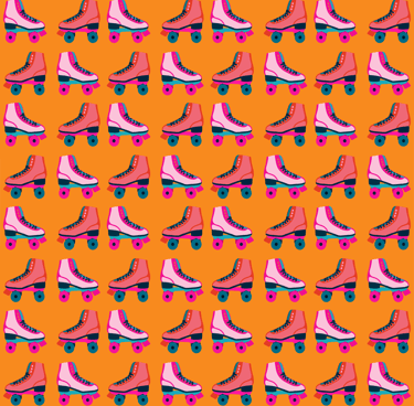 retro rollerskate-teal & orange